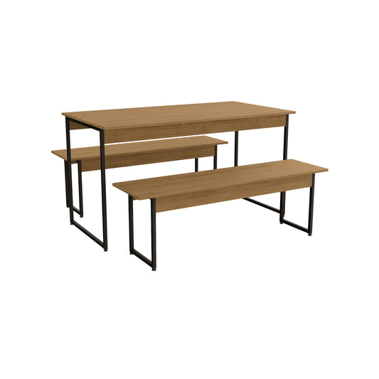 Juego de Comedor Mesa 2 Bancas Madison Castaño Metal