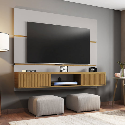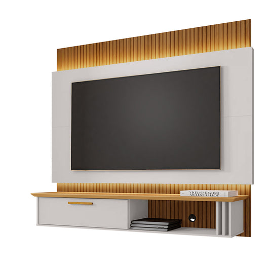 Panel Rack Tv 65" Ambar Blanco Invierno Canela Ripado