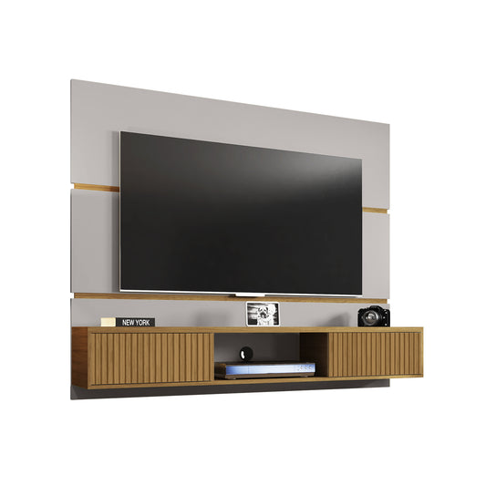 Panel Rack Tv 65" Ambar Canela Blanco Invierno Ripado