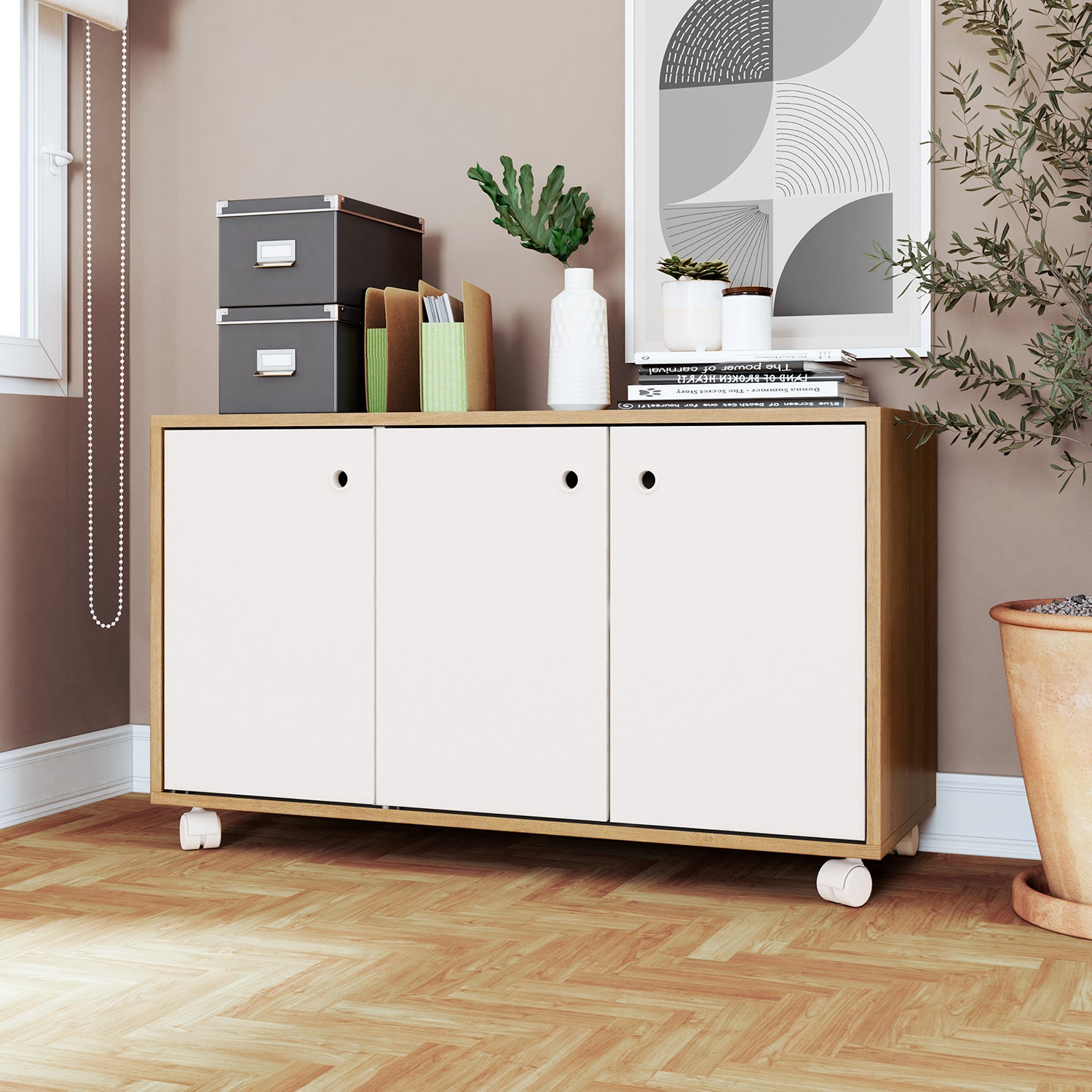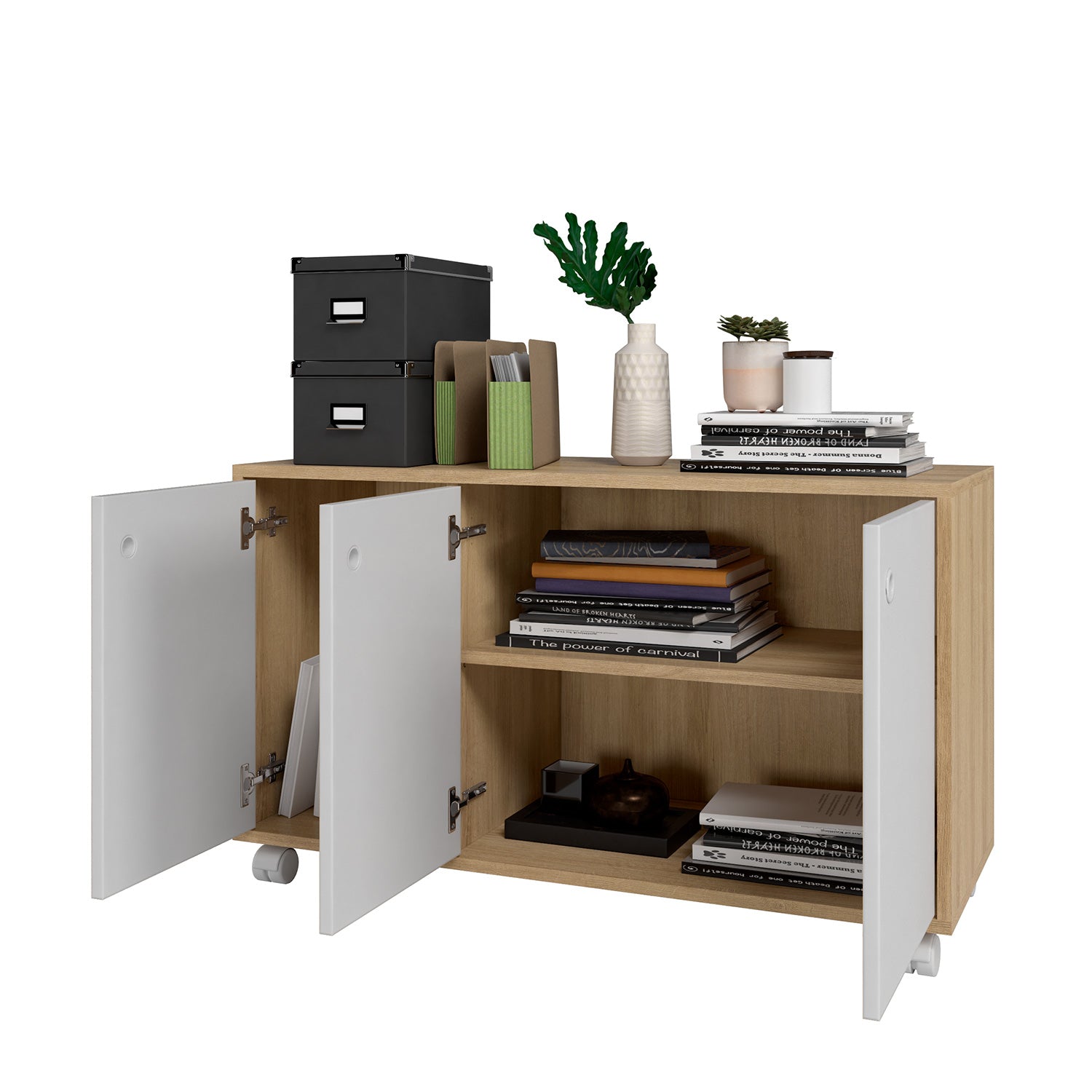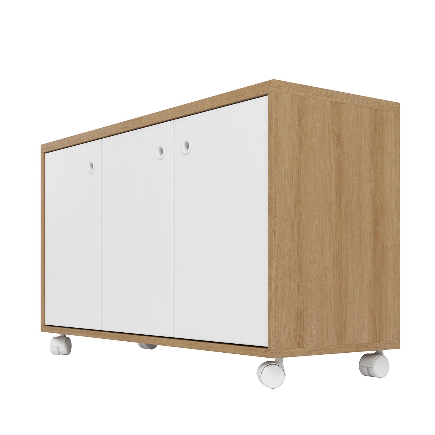 Este no es solo un mueble, es la solución perfecta para organizar tu vida con estilo. Nuestro aparador buffet, fabricado en MDP de 12 mm, ofrece la combinación ideal de funcionalidad y diseño. Con tres puertas y un amplio espacio interior con una repisa, tendrás el lugar perfecto para guardar todo lo que necesitas, desde libros y mantas hasta documentos y artículos de papelería. Gracias a sus cuatro ruedas, podrás moverlo sin esfuerzo y adaptarlo a cualquier rincón de tu living u oficina, ¡siempre listo para impresionar! Dile adiós al desorden y eleva tu espacio a un nuevo nivel de practicidad y elegancia.