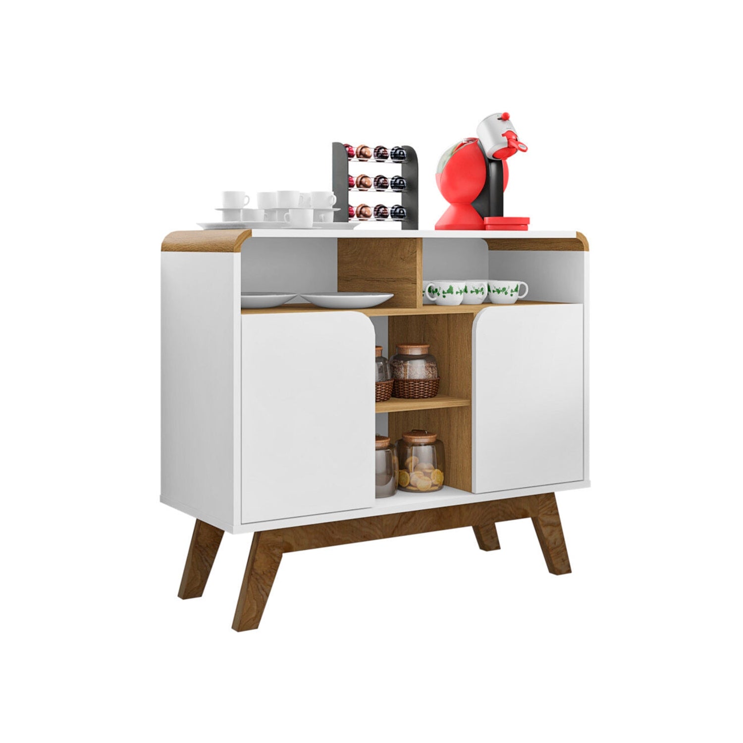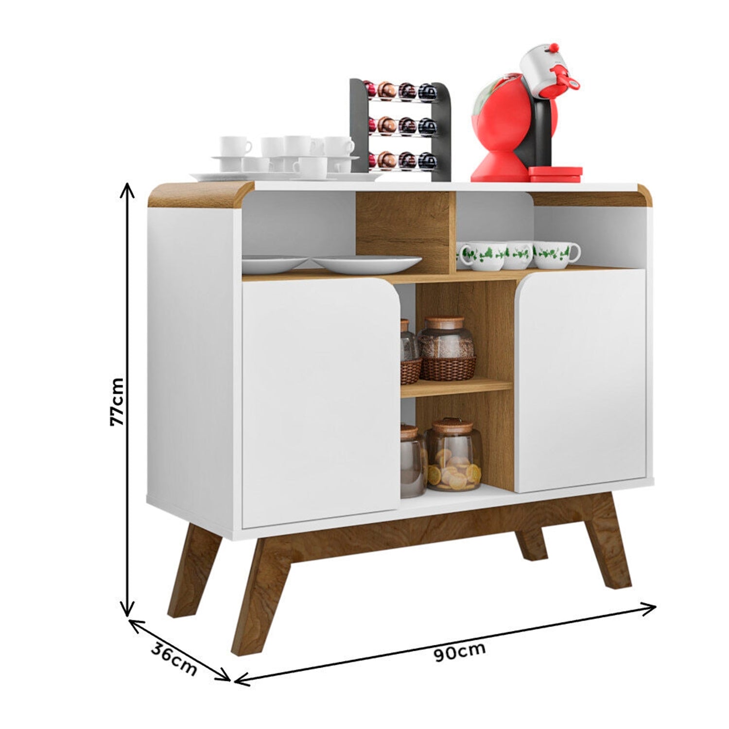 El aparador buffet berilo es ideal para tu salón. Con un diseño moderno de curvas agregará mucho más encanto y refinamiento a su entorno. Tiene 2 puertas con bisagras metálicas, las cuales tienen un nicho interior y cada puerta tiene un diseño innovador con bordes superiores mecanizados en ángulo. Cuenta con 4 nichos ideales para acomodar bebidas, objetos decorativos, vasos, etc. Esta elaborado en un material de MDP de 15mm y patas en madera maciza, estos atributos garantizan al producto una mayor resistencia y durabilidad. El alto brillo es un acabado de pintura ultravioleta realizado mediante la aplicación de barniz que proporciona un brillo intenso, asegurando más belleza al mueble.