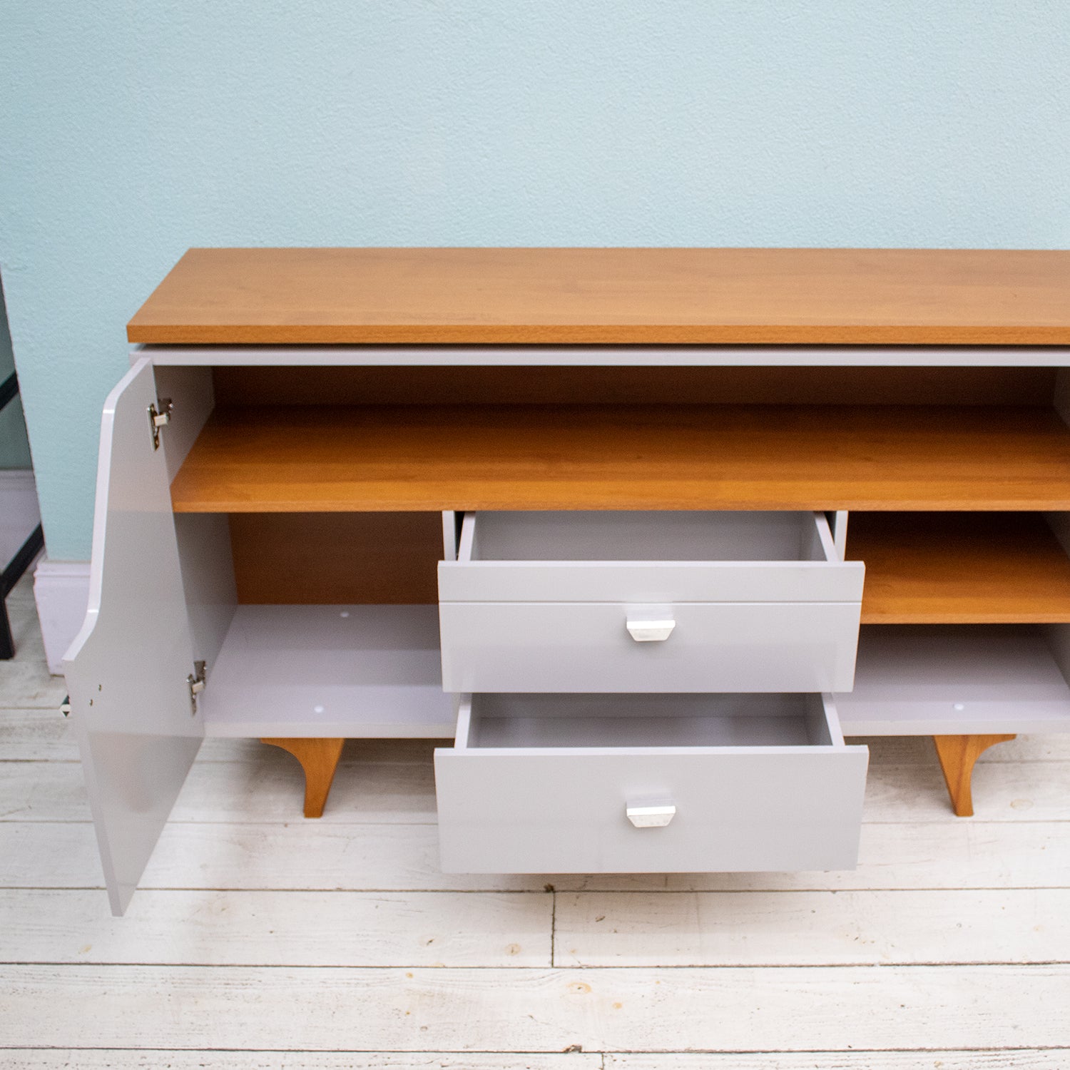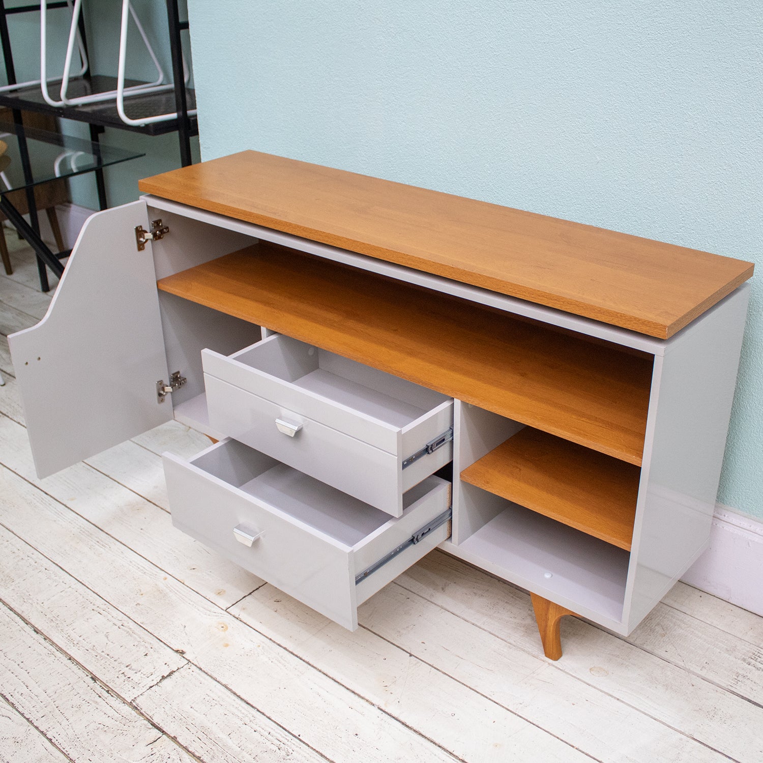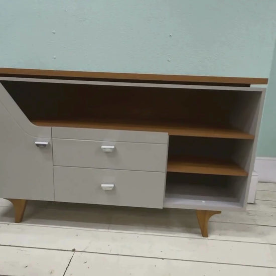 ¡Te presentamos el nuevo nivel de modernidad en diseño con el aparador buffet lyon! Sus líneas curvas combinadas con una doble tapa, elevan el aspecto de este mueble a un nuevo nivel. Tiene una puerta de MDP de 15mm con bisagras con cierre suave que garantizan un toque de elegancia para el uso diario. Con 2 cajones fabricados en MDP de 15mm con guías telescópicas de movimientos fluidos y precisos, una repisa al costado para una mayor organización y las patas de madera maciza confiere a este aparador una base sólida y duradera, que combina estilo y calidad con un acabado de la superficie ultravioleta.