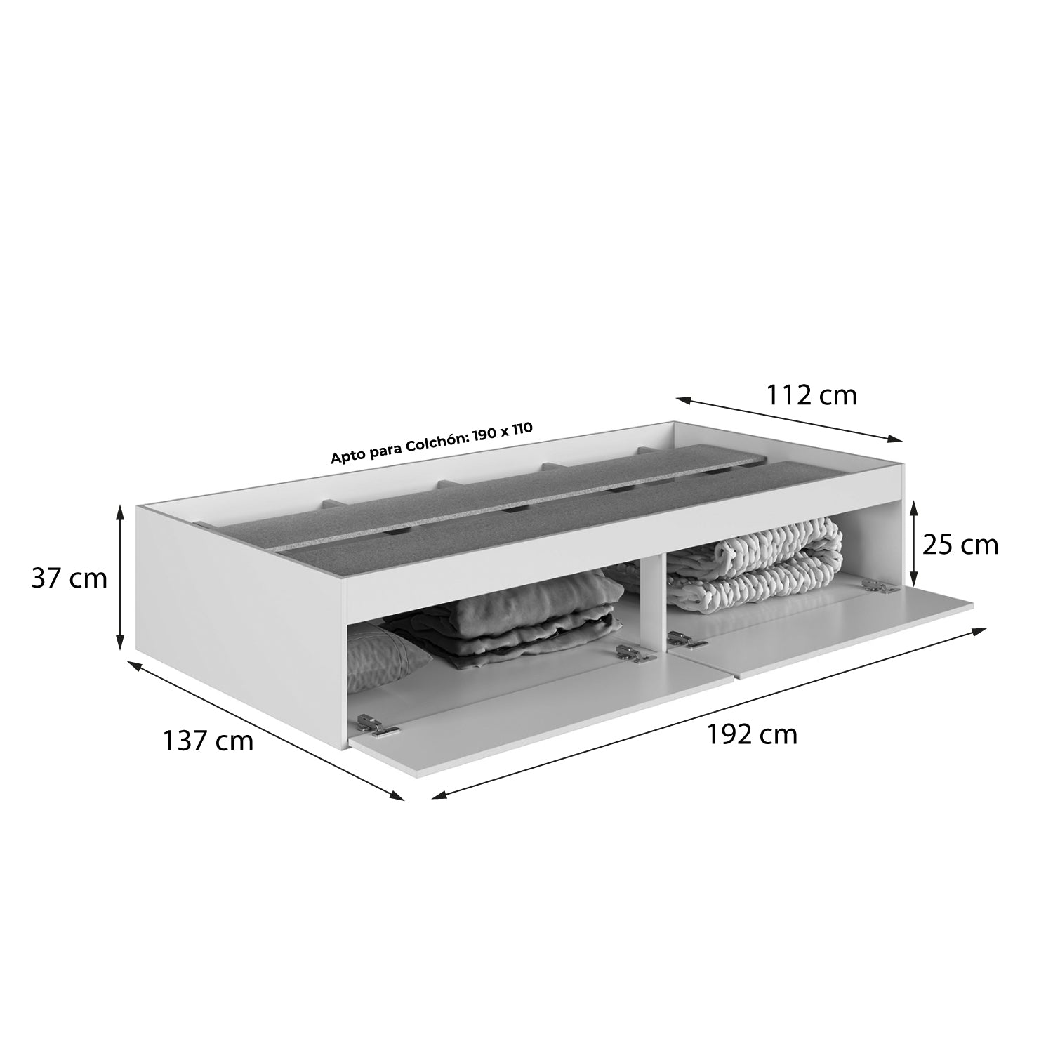 Colchón recomendado: Profundidad 190 cm x Ancho 105 cm x Altura (elección del cliente).