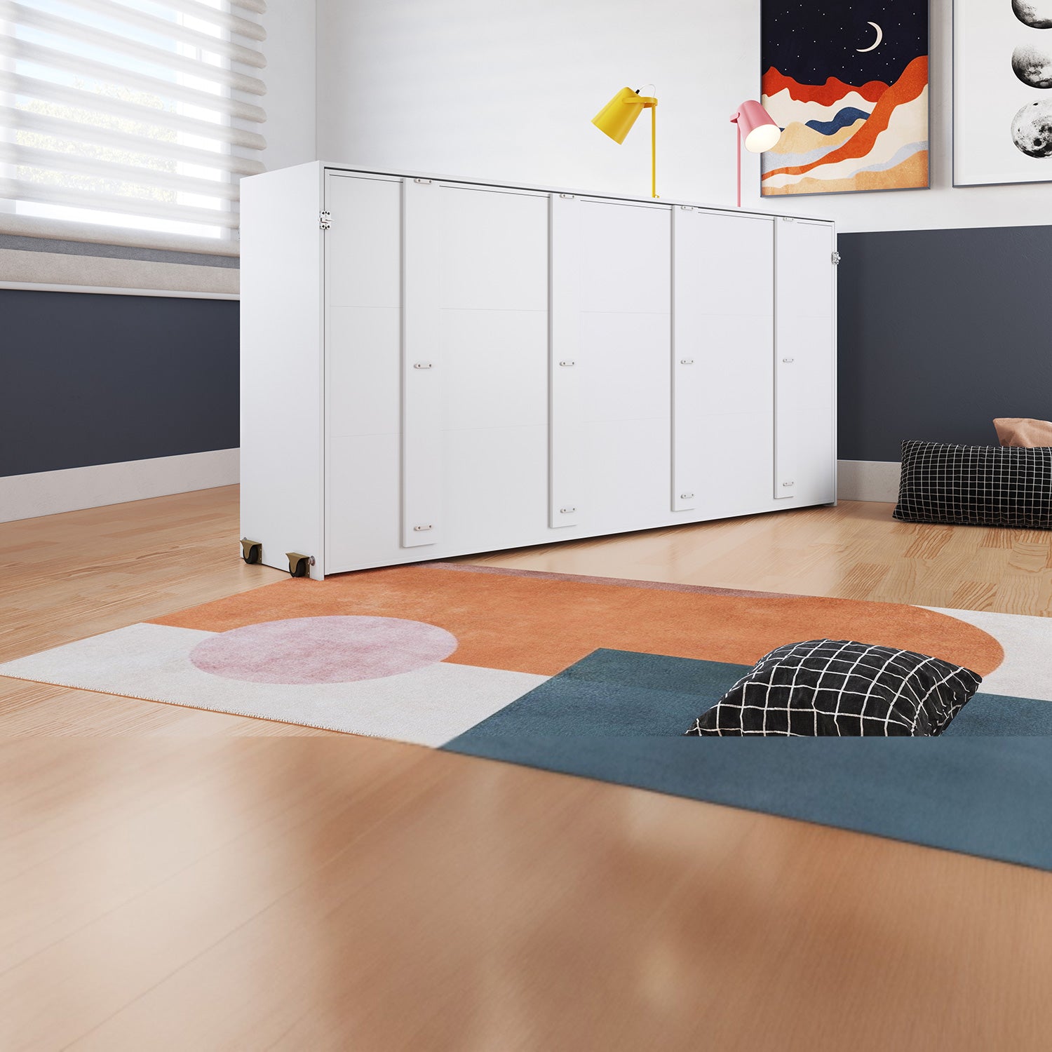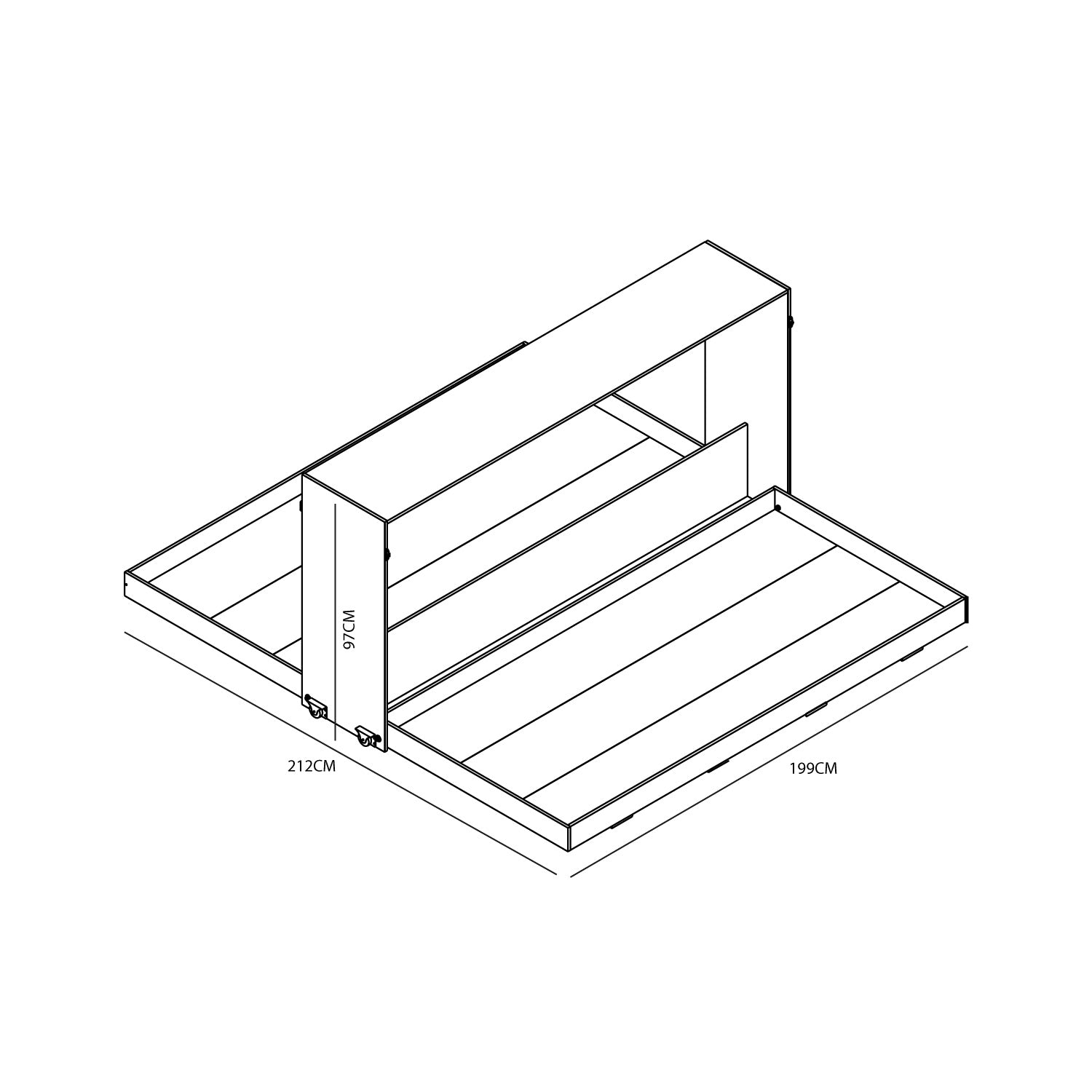 La cama doble plegable horizontal 1 plaza Phoenix está diseñada para priorizar la optimización del espacio. Creada para ambientes que necesitan espacio y decoración durante el día y por la noche necesitan una cama cómoda para descansar, o incluso una cama supletoria para invitados. Este producto con mecanismo manual fue elaborado en excelente material de MDP de 12 mm y acabado de lámina satinado, lo que garantiza una mayor resistencia y calidad en sus muebles. Somier liso elaborado en MDP 12 mm con un soporte de palillaje en la parte inferior.