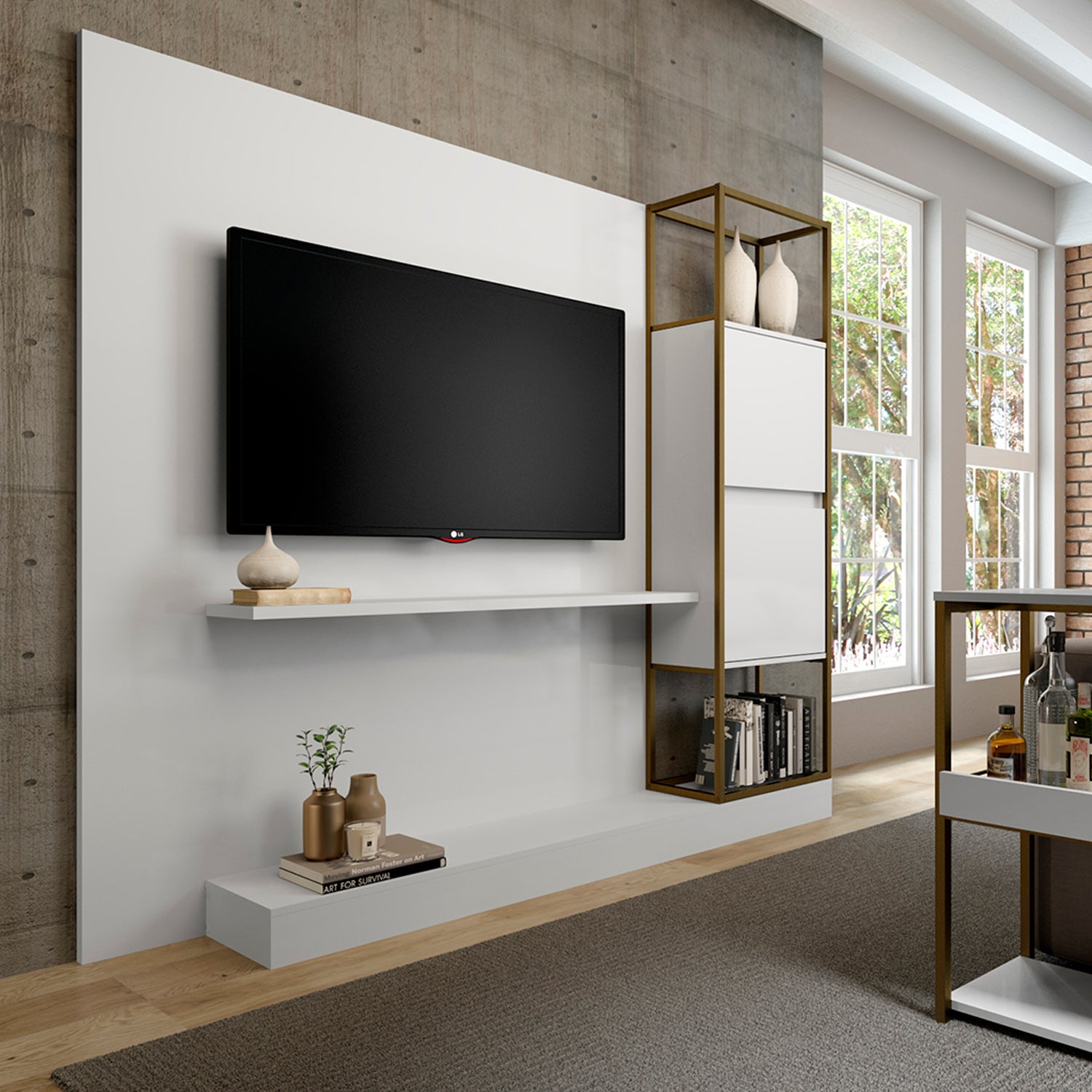 Centro de Entretenimiento Rack Tv 60" Home Design Blanco Oro Envejecido