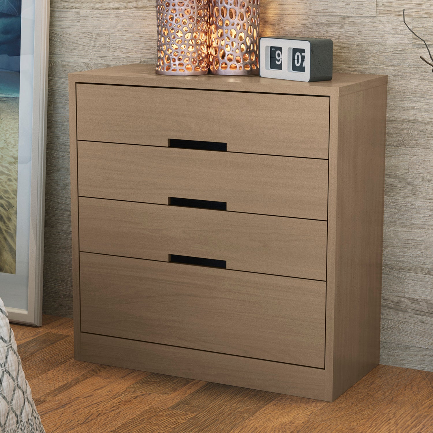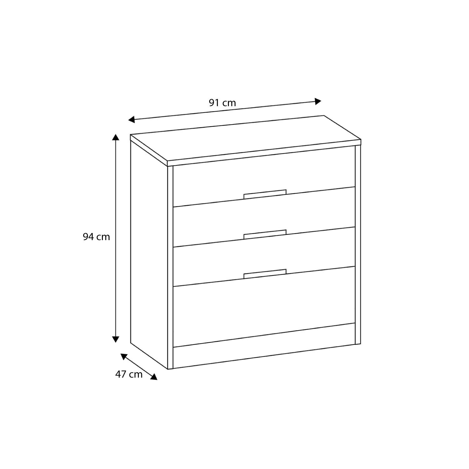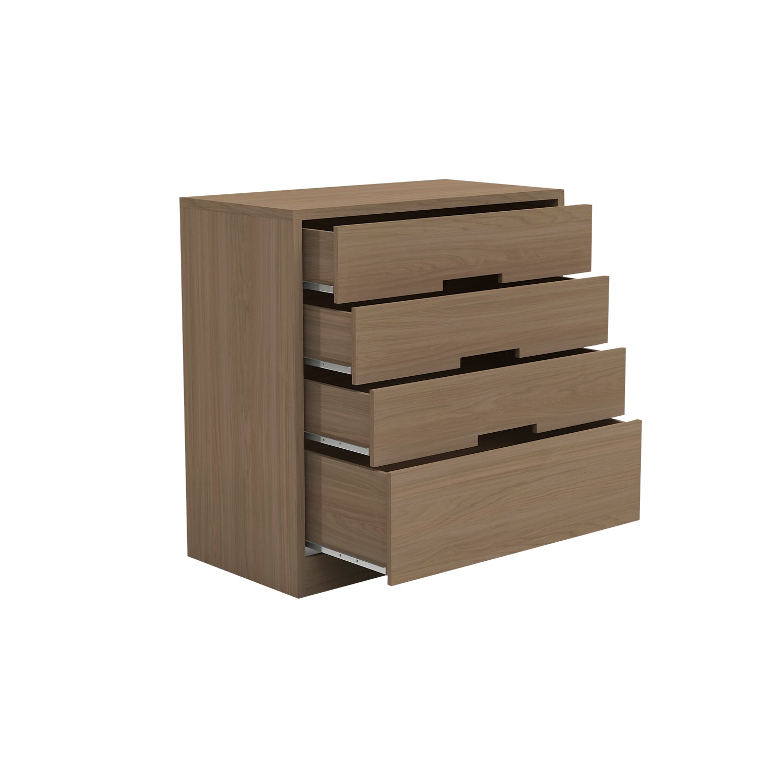 La cómoda genova tiene 4 cajones con correderas metálicas para guardar tus prendas, pertenencias y accesorios. Ideal para organizar y decorar el entorno. Esta elaborado en un material MDP de 15 mm y 25 mm. Tiene un acabado de pintura ultravioleta que asegura la calidad y resistencia del producto. Innova tu entorno aportando más refinamiento y funcionalidad.