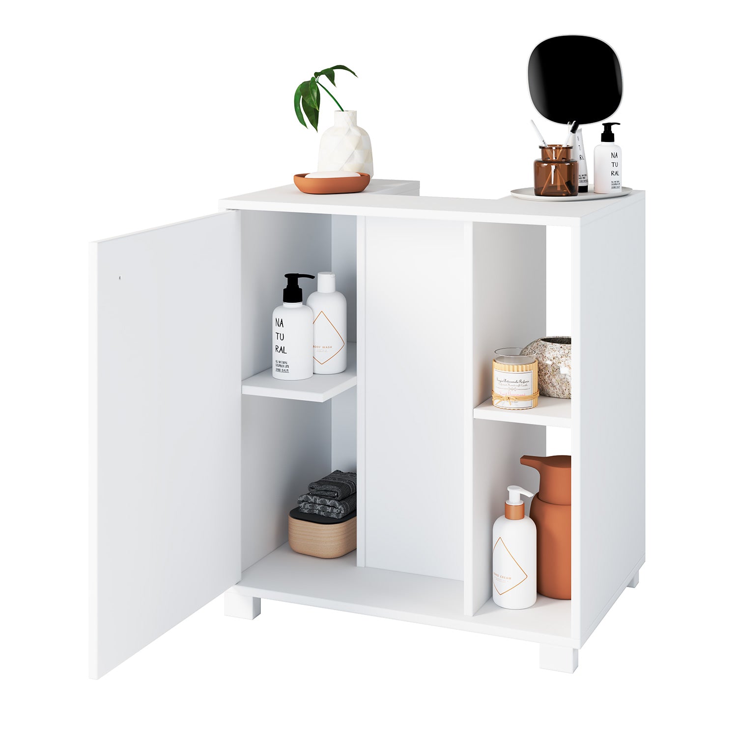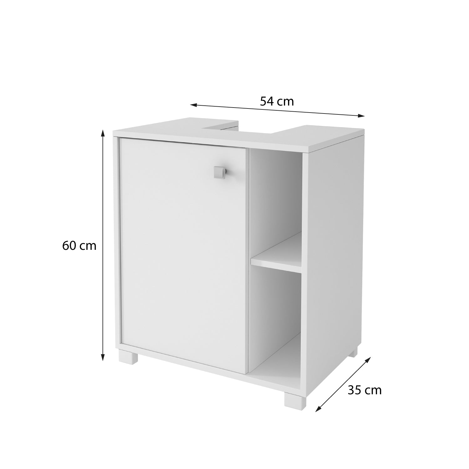 Eleva el estilo de tu baño y maximiza cada rincón con este mueble bajo lavamanos. Con su diseño inteligente, este mueble es la pieza central que tu baño necesita, fusionando estilo y funcionalidad a la perfección. Está fabricado en MDP de 12 mm, un material que garantiza resistencia y durabilidad frente a la humedad. Su puerta oculta un compartimento ideal para tus productos de limpieza o cosméticos, mientras que las dos repisas interiores te ofrecen el espacio perfecto para mantener todo organizado y al alcance de la mano. Además, sus cuatro patas de soporte y un espacio dedicado para el desagüe, lo hacen fácil de instalar y adaptan a cualquier lavamanos estándar.