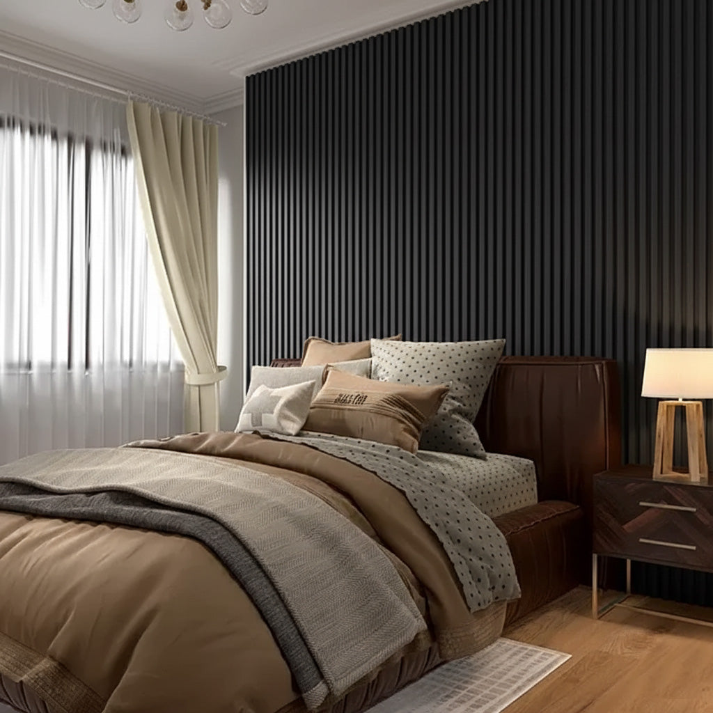 Panel Pvc Revestimiento Muros y Cielos 2,6mt X 15cm X 10mm Negro