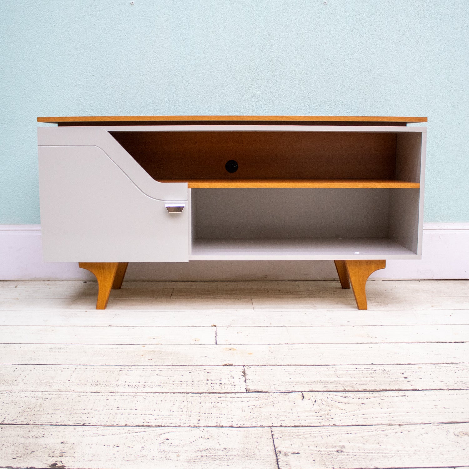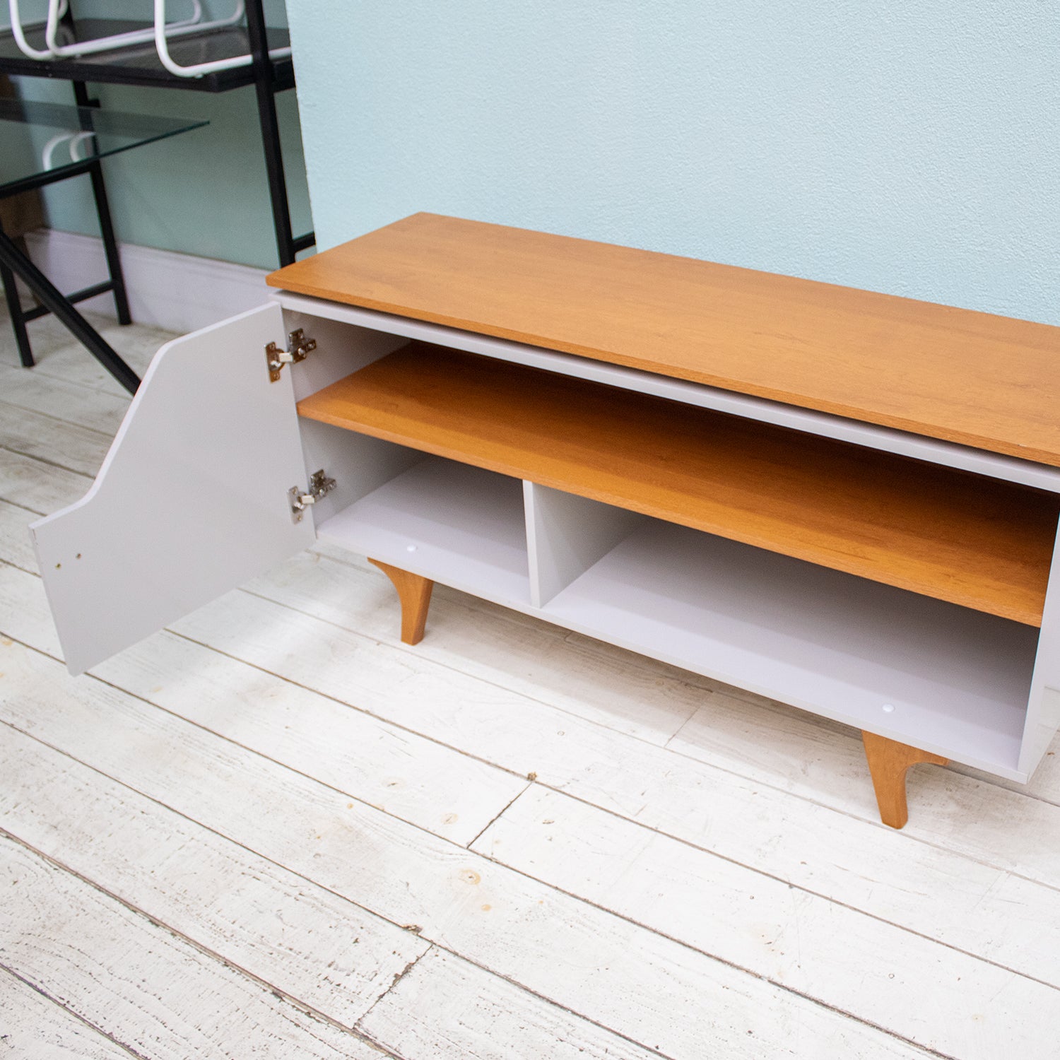 El rack valencia es un verdadero encanto, trayendo consigo la tendencia del diseño curvo con detalles de doble tapa. Fabricado en MDP de 15mm, compacto, sus patas de madera maciza no sólo añaden un toque de elegancia, sino que también garantizan una durabilidad excepcional. Tiene una puerta de MDP de 15mm con bisagras con cierre suave que garantizan un toque de elegancia para el uso diario. Además, destaca el compartimento trasero especialmente diseñado para alojar un alargador eléctrico tipo zapatilla, haciendo que instalar y organizar tus dispositivos electrónicos sea una tarea sencilla y práctica. ¡Ideal para televisores de hasta 50 pulgadas! Con un acabado de la superficie ultravioleta.