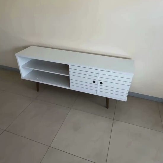 El rack ónix para tv de hasta 70 pulgadas es la pieza que falta para que todo esté ordenado de la manera que te gusta en tu sala de estar u habitación. El modelo moderno y único está desarrollado con materiales de calidad que proporcionarán una decoración despojada. El mobiliario tiene 2 nichos, uno con 2 puertas y otro con repisa para organizar objetos decorativos y dispositivos electrónicos. Esta elaborado en un material de MDP de 25 mm y otros componentes de la estructura en MDP de 15 mm; puerta en MDP de 15 mm con frisos mecanizados; patas en madera maciza y bisagras metálicas. El alto brillo es un acabado de pintura ultravioleta realizado mediante la aplicación de barniz que proporciona un brillo intenso, asegurando más belleza al mueble.