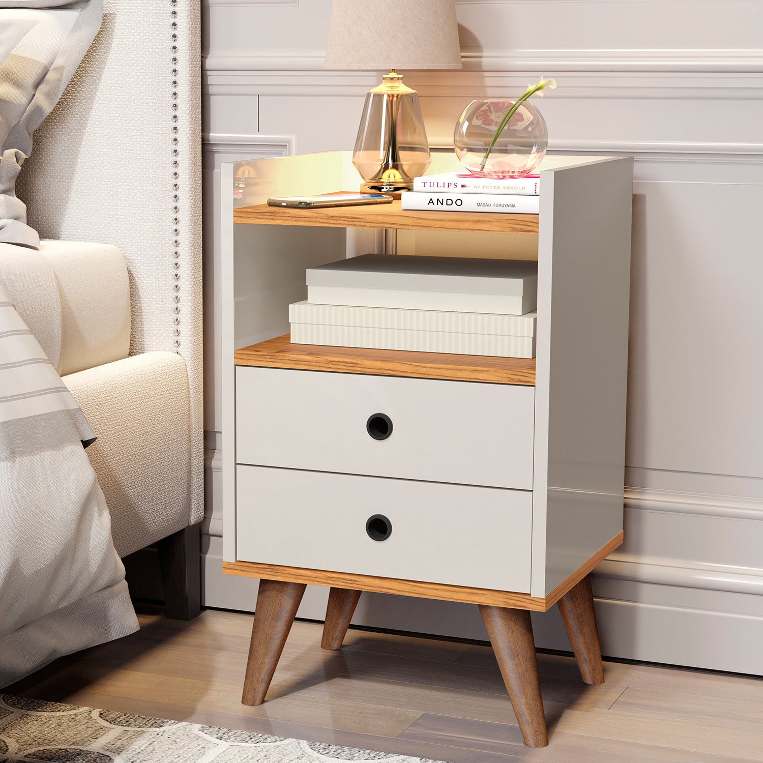 Velador 2 Cajónes Dreams Blanco Invierno Castaño