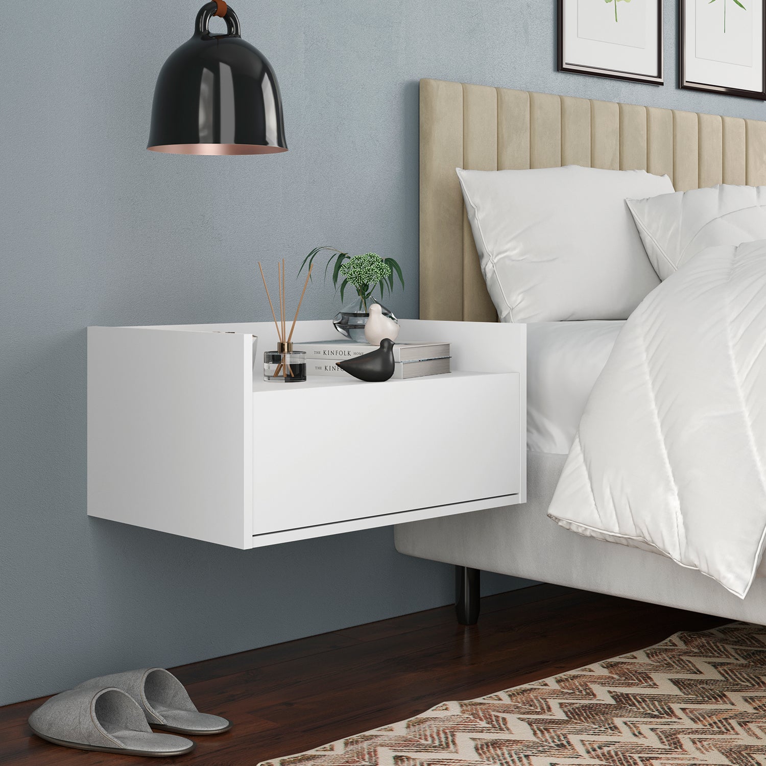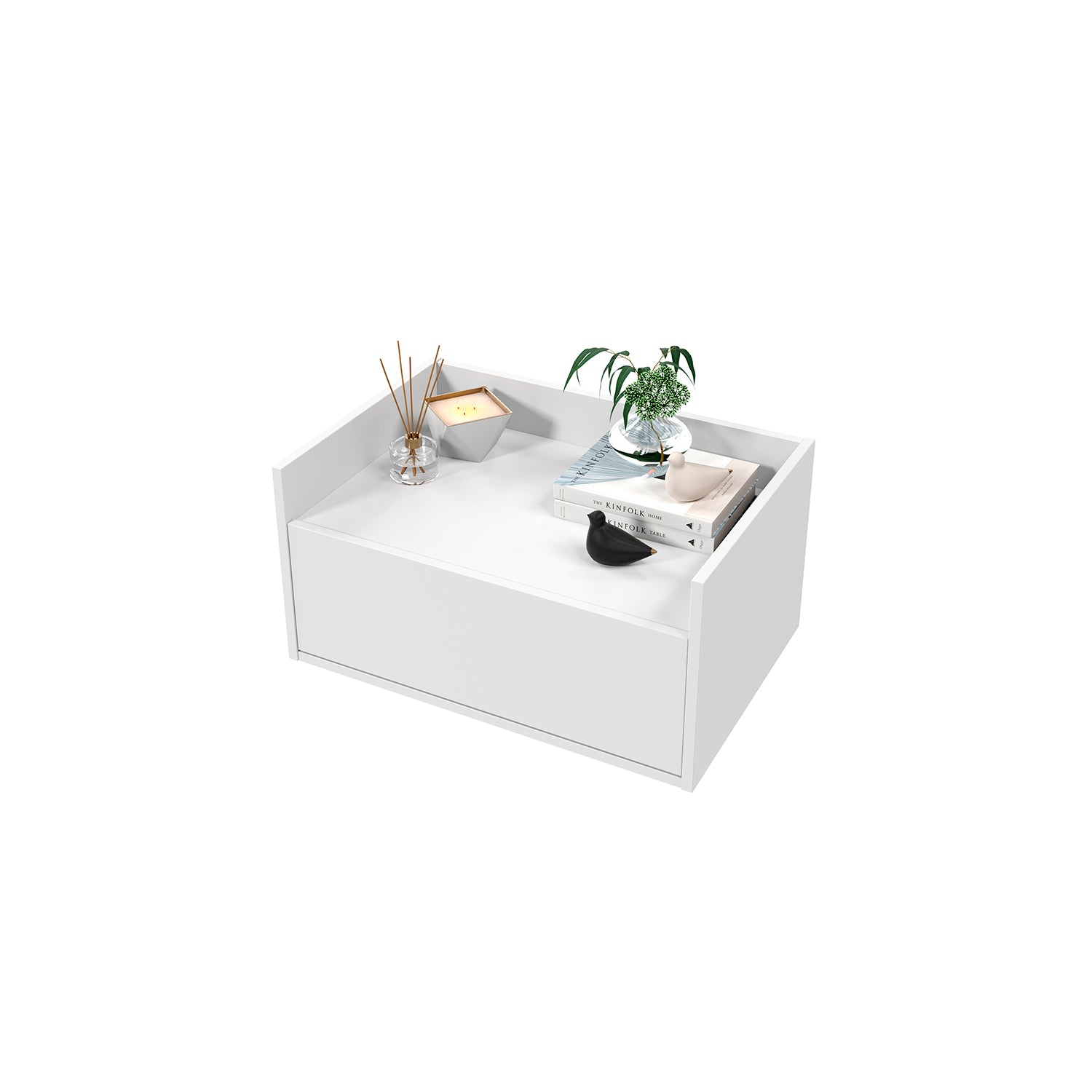 El velador aéreo Alissa con su estilo moderno ayuda a componer el entorno y sigue siendo súper funcional, pudiendo acomodar varios objetos de uso personal haciendo que tu habitación sea aún más bella y elegante. Elaborado en un material MDP de 15 mm con recubrimiento de pintura ultravioleta. Es funcional como repisa y contiene 1 cajón que añaden él encanto en la habitación que se coloque.