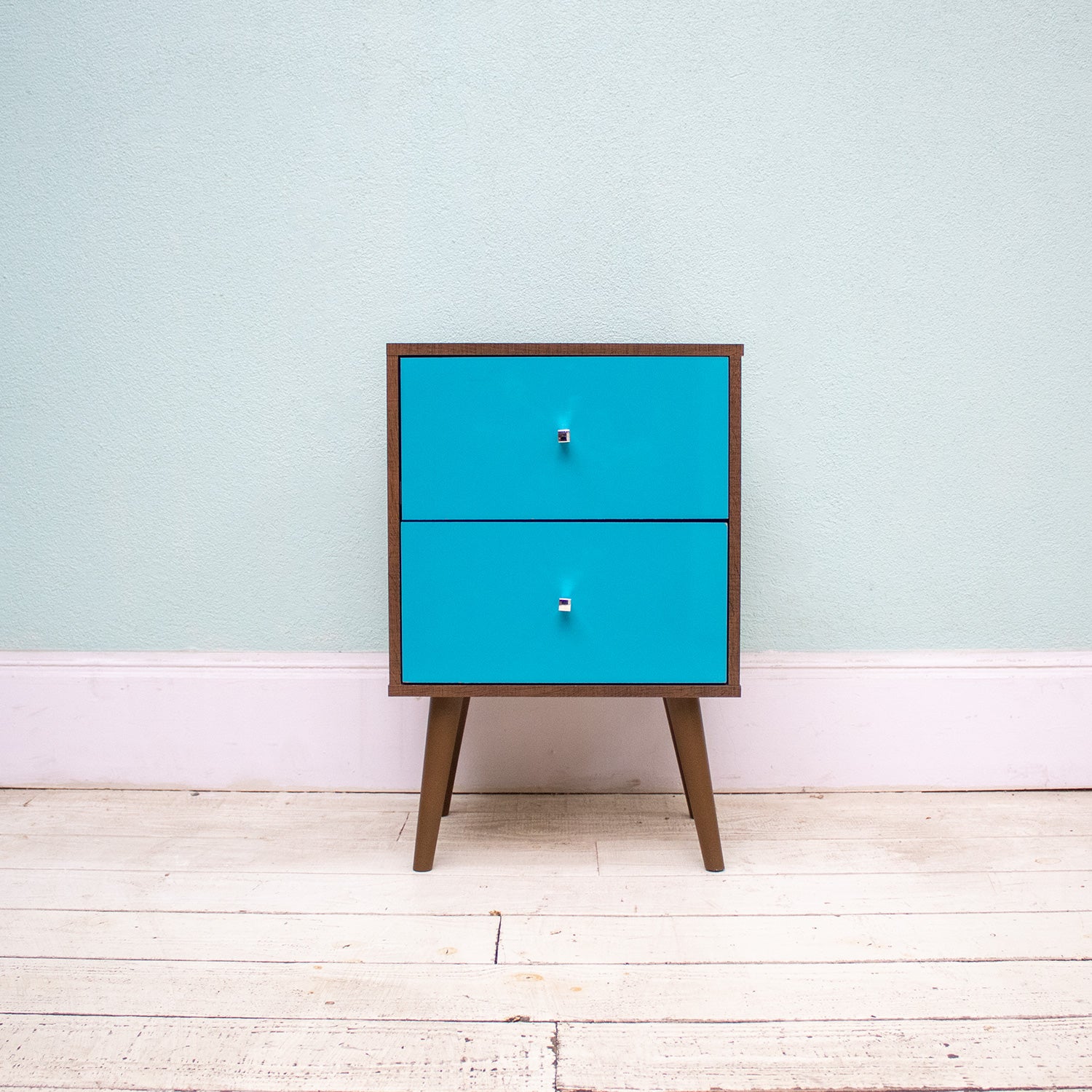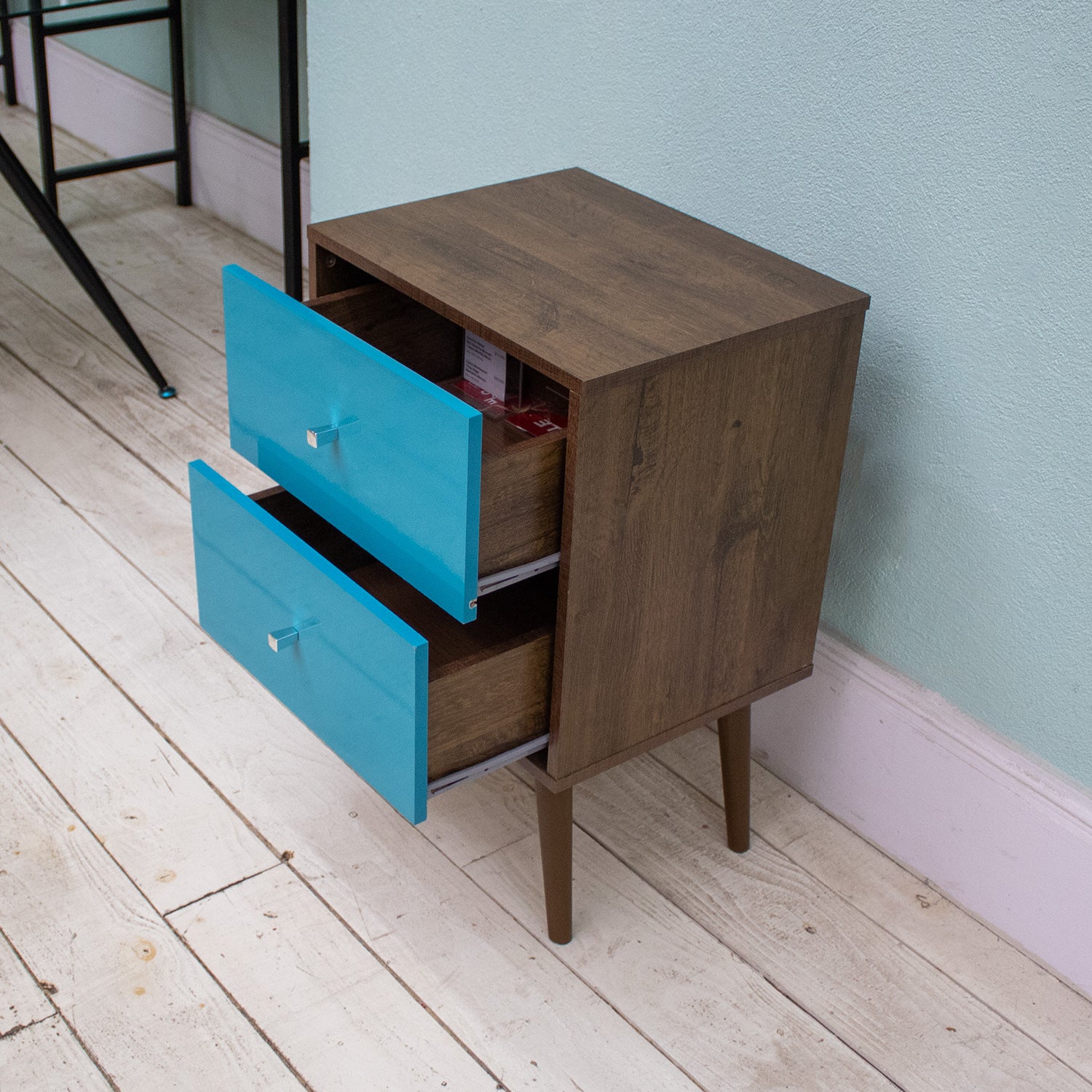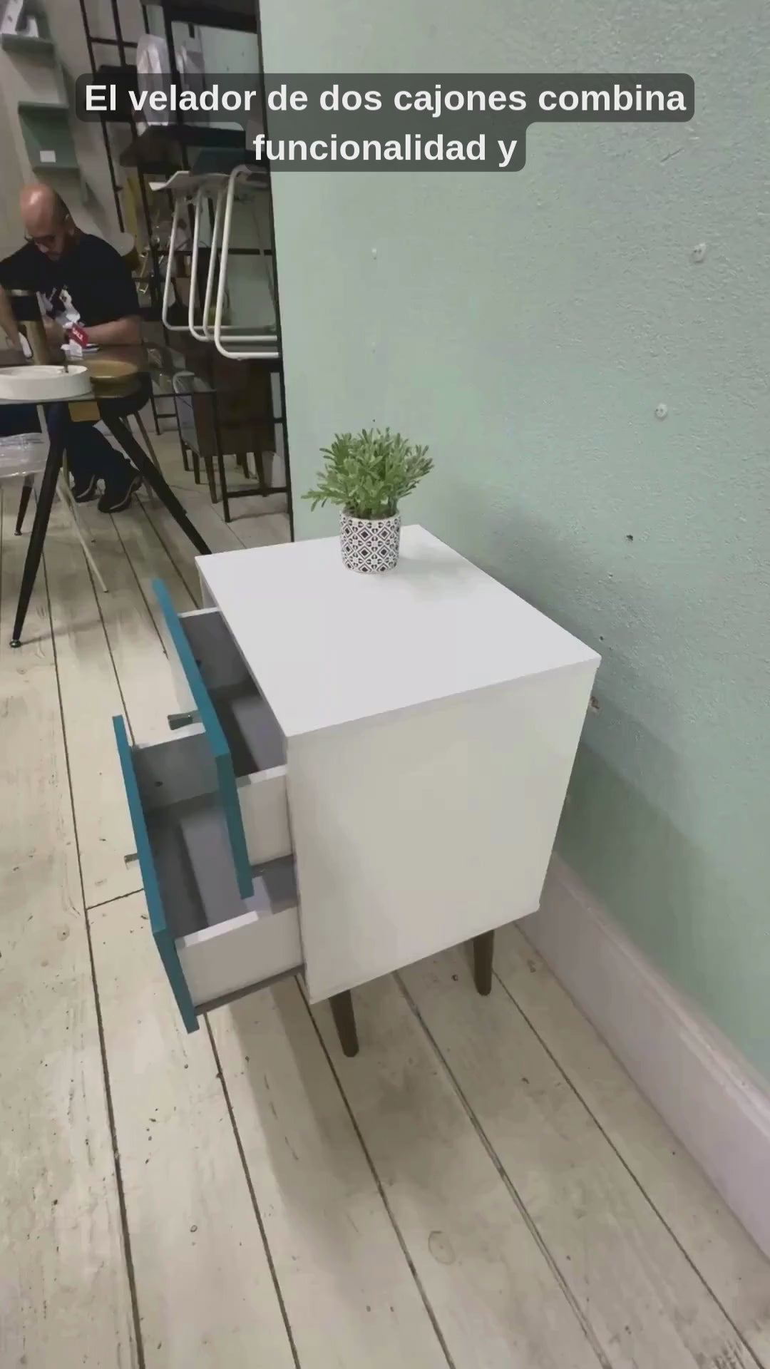 El velador de 2 cajones es ideal para acomodar pequeños objetos decorativos o libros y otros artículos que deben estar a la mano. Sus cajones también le permiten almacenar artículos personales de una manera más reservada. También se puede utilizar como una pequeña estantería para la sala de estar u oficina. Sus patas están hechas de madera maciza que le dan a la pieza un encanto extra. Producto elaborado en un material en MDP de 15 mm con un acabado en pintura ultravioleta semibrillante, manijas de plástico y correderas metálicas, estas características garantizan al producto una mayor resistencia y durabilidad.