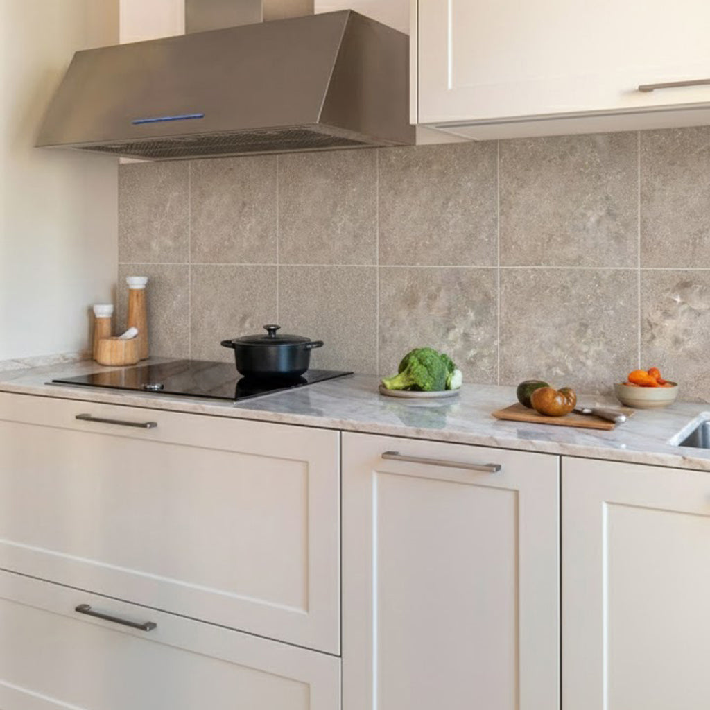 Este formato rectangular logra un look sofisticado similar al porcelanato pero con instalación mucho más rápida y menor peso por pieza. Perfecto para muros completos de duchas, espaldas de cocina, vanitorios y espacios de alto impacto visual.